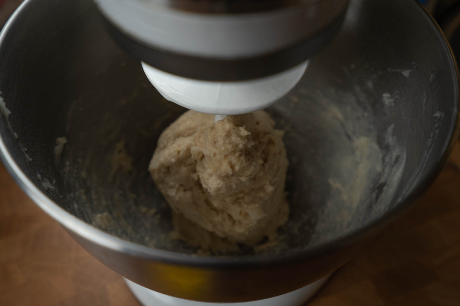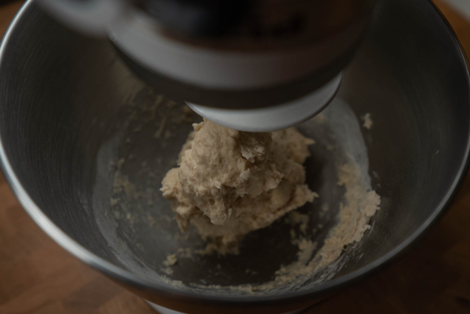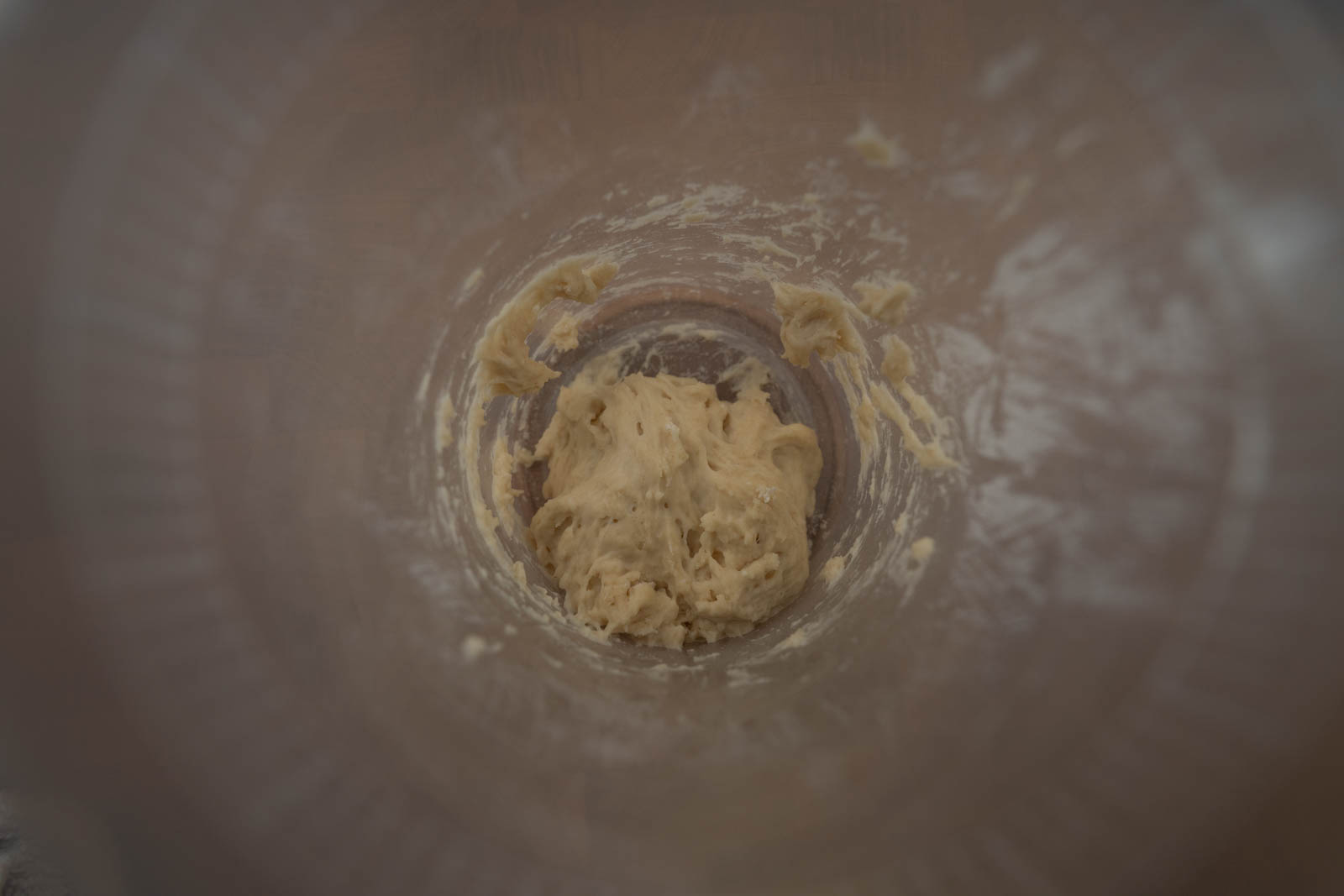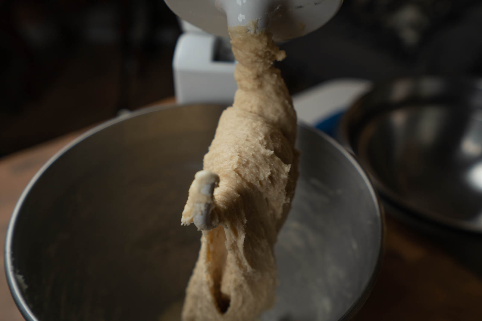 - When all ingredients are combined, turn the speed up to 5 or 6 to knead the dough for 20 min.