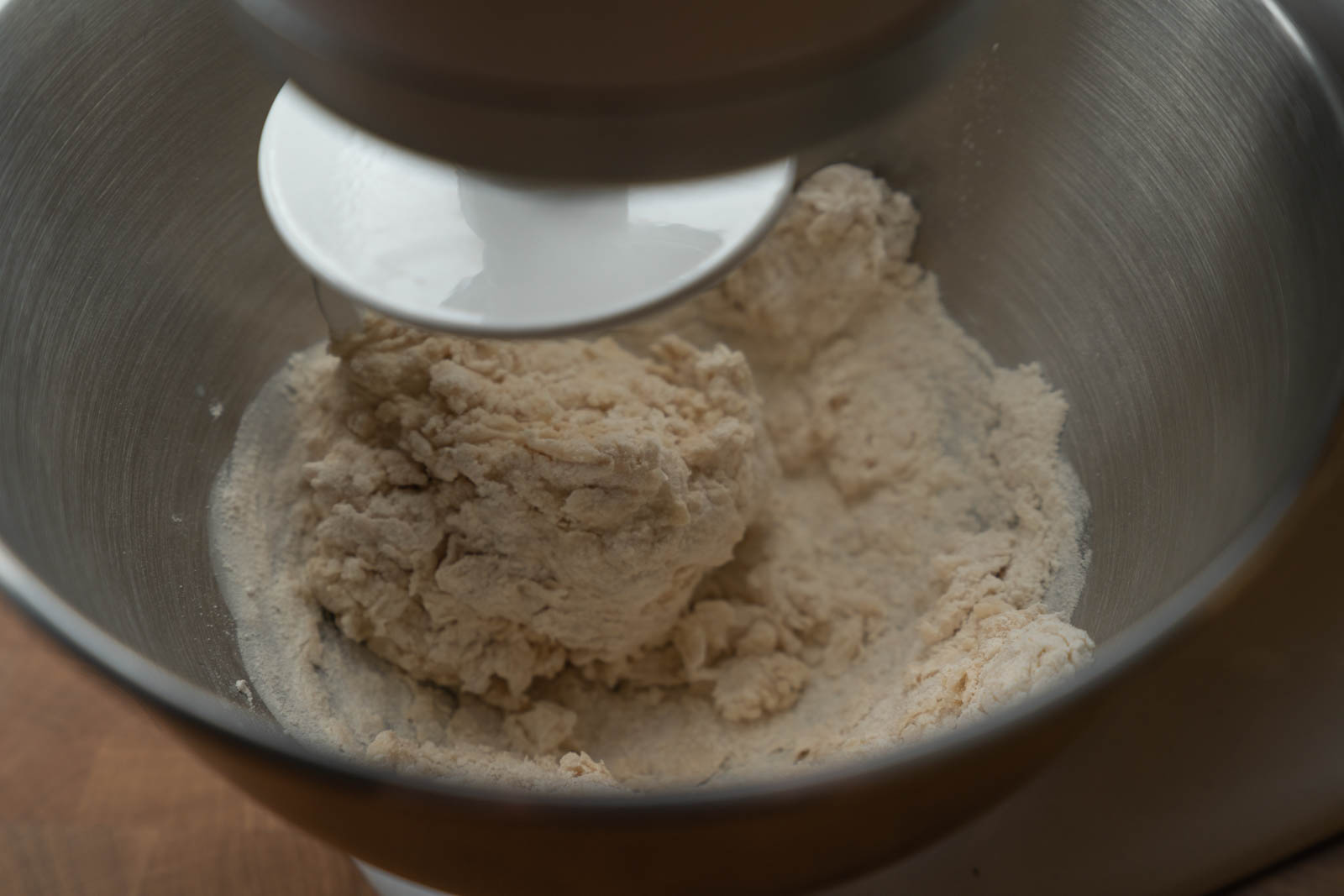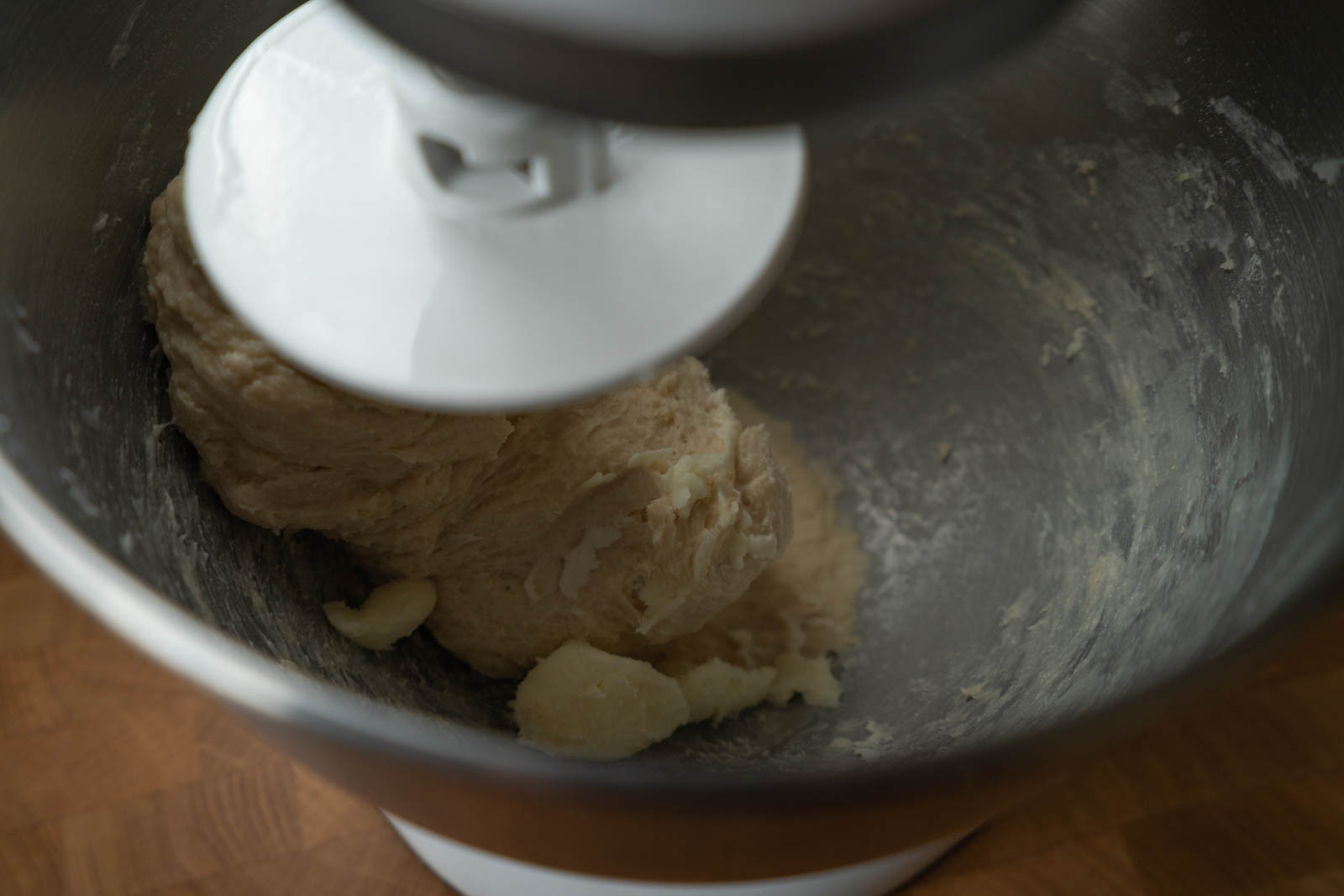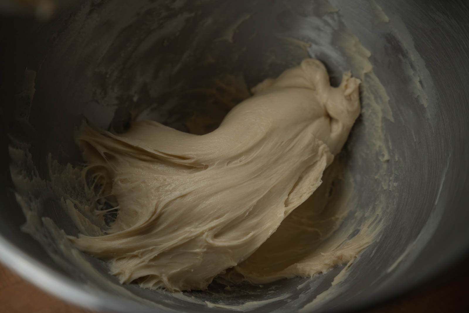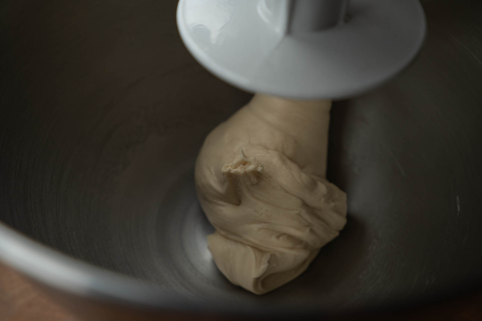- At low speed, mix in milk, egg, and tangzhong until it all comes together.