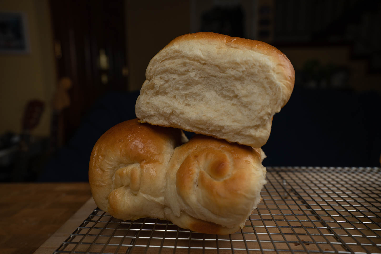 In the finished breads, there weren’t super distinct differences though the tangzhong recipe did come out just a tiny bit softer and with a hint more flavor. The yudane had a little more chew and a more distinct crumb. Both excellent breads and they are reminiscent of Hawaiian bread though lighter. And similarly, I could eat the tangzhong one by itself, otherwise with some butter and jam would be really nice. As sandwich bread it probably needs toasting as both are a bit soft to hold anything too wet.