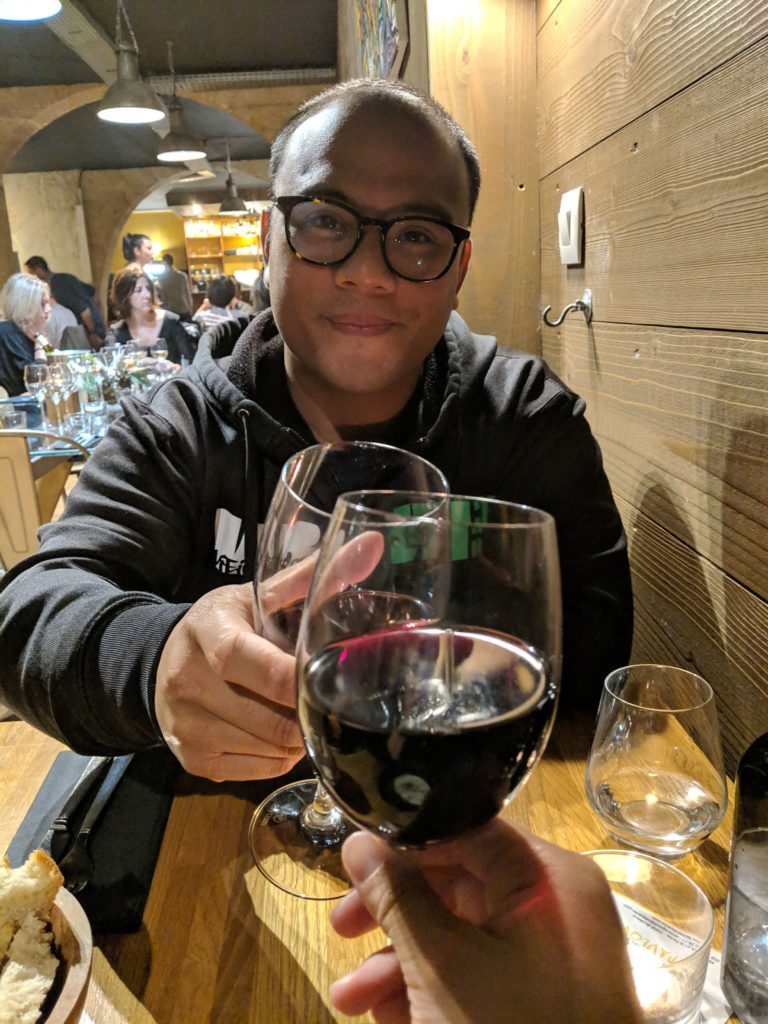 Reservations are recommended if you plan for a later dinner (later by American standards). We both got the tasting menu; in fact the whole table has to do the tasting menu and if you’re doing the tasting, you cannot order anything else à la carte. We had also wanted to try the foie gras, but she insisted that we could order just à la carte or tasting, then confidentially reassured us the foie would be on the tasting menu. It turned out that it wasn’t actually on the tasting menu that evening, but since she promised it, she gave us the foie on the house!