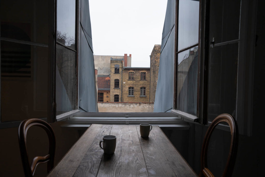 A couple hours later when we were allowed to check in, we grabbed our luggages and rolled down a couple meters to a short tunnel lit by a sparkling disco ball, spinning almost imperceptibly like the aftermath of a good party, and into a courtyard that connected a lounge, a creative space, and the building our AirBnB studio was housed in. At the second to last floor across from a yoga studio, we found the apartment and let ourselves in. The space was small but functional and there were these cute illustrative signs all over to warn us about water temperature or what to do in case of a toilet emergency.