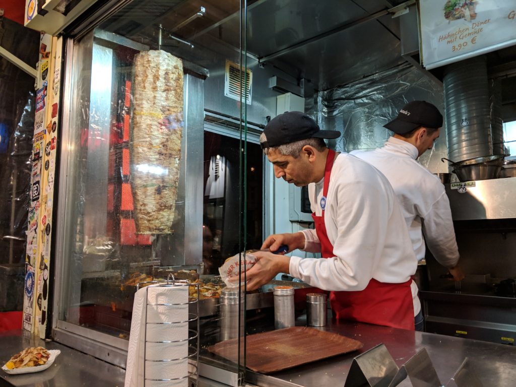 Mustafas Gemuse Kebap, mustafas.de, Mehringdamm 32, $ – Famous kebap stall in Berlin. Super tasty and the best meal you can buy at less than 4 EUR. There’s almost always a long wait unless you go right when they open.