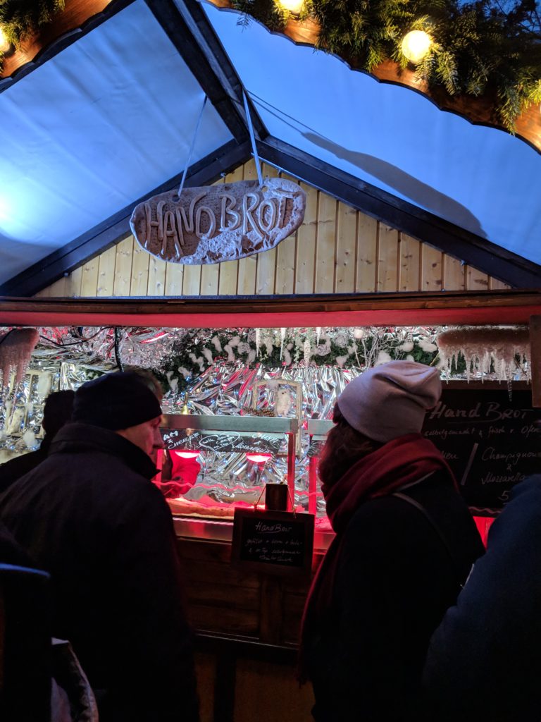 The Mittelalter-Weihnacht medieval market reminded us of those Renaissance fairs back at home, but here a couple guys stood at the entrance to pierce your tickets with their spears. We circled the market to scope out the treats and settled on some giant turkey filled handbrots and another version of Flammkuchen and big puffy apple fritters, though nothing was as tasty as the ones we had in Berlin. There were fun shops selling medieval styled clothes and a blacksmith like shop that had all sorts of knives and tools. A puppet show and musical performance seemed to make this the perfect market to bring the kids, until we spotted a group of men stripping down to step into a hot tub.