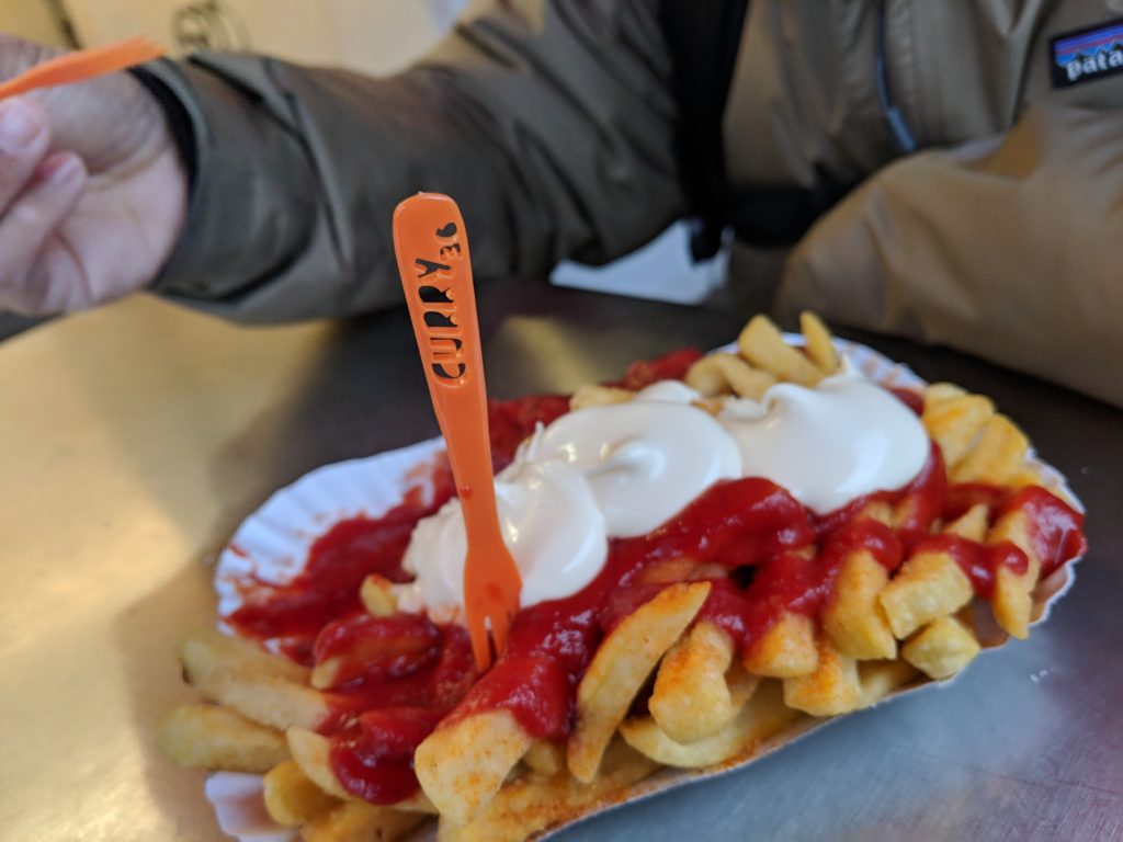 That evening we decided to check out the famous Mustafas Gemuse Kebap just down the street from our AirBnB. Despite the simplicity, the kebap stall had the longest line we’ve ever seen for something like kebaps: but let us assure you that they are as good as advertised. For 3.90 EUR, you can get a full meal out of a bold and flavorful chicken kebap sandwich and it’s the best you’d never expect to find at that price. However, you might have to pay in time: the line can sometimes take up to 45 minutes, like it did for us that first time. Luckily we made friends with a fellow waiting behind us, also visiting Berlin from the States. By the time we got our kebaps we were starving and simply stood right next to the stall and wolfed them down with our new friend before parting ways. Another day we lucked out and saw no line when we passed as they opened the stall, and jumped at the opportunity.