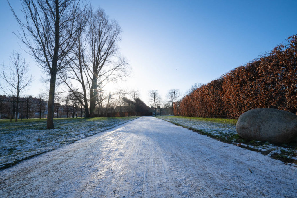 On our first clear and crisp day we strolled through the King’s Garden (Kongens Have) and the Botanical Garden (Botanisk Have). We started at the King’s Garden, also known as the Rosenborg Garden, an expansive park with various sculptures and a well-laid rose garden (though in winter you’ll have to imagine the roses). The 3 entrances and paths have remained the same though the original orchards and gardens have since been replaced and modernized. While winter saw less colors, the flat openness of the park lends itself to the season’s aesthetic: the thin blanket of snow made for some beautiful photos. In the summer the park is filled and often used for events, but we were happy to have the park mostly to ourselves during the brisk afternoon: we only ran into some gardeners and a handful of people here and there.