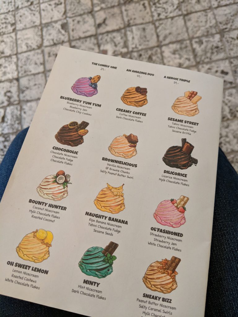 Nicecream, nicecreamcph.com, Elmegade 30, $-$$ – All Vegan ice cream with rad branding. Their ice cream is coconut milk based and soooo creamy: great rich flavors and no artificial tastes at all. I got their Banana which tasted really like sweet ripe banana. Carl had their Sneaky Bizz which had such a rich Peanut Butter flavor. They offer a rotation of flavors at 50% off, so you can save here too! If taking a pint to go is an option for you, bring your own container for 10% off!