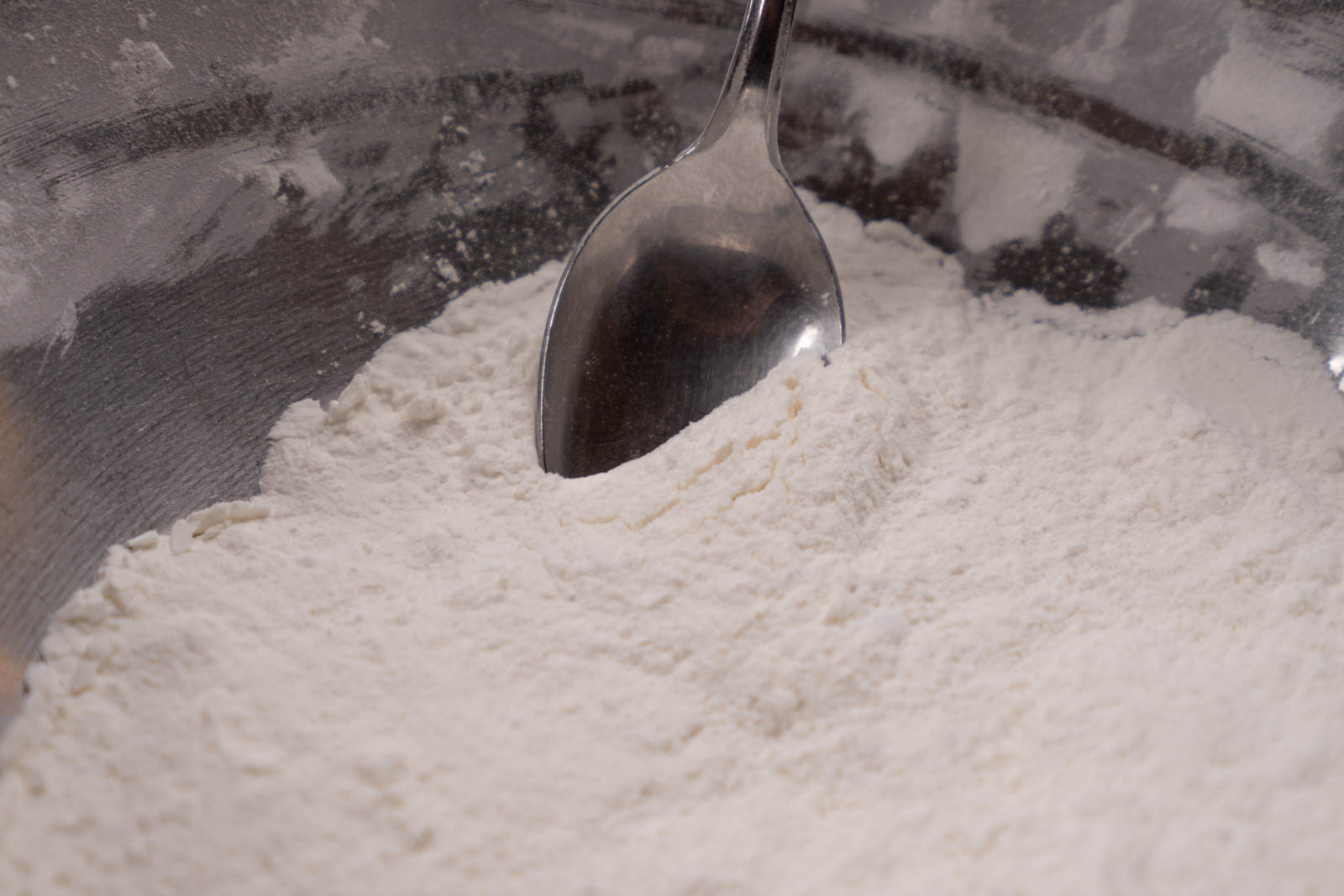 - In another large bowl, make Dry Mix: combine your flour, corn starch, potato starch, baking powder and salt.