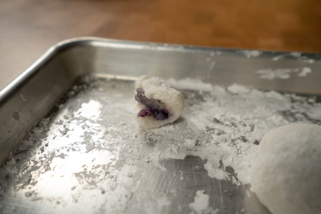 13. When finished with dividing the mochi, you can begin filling them.