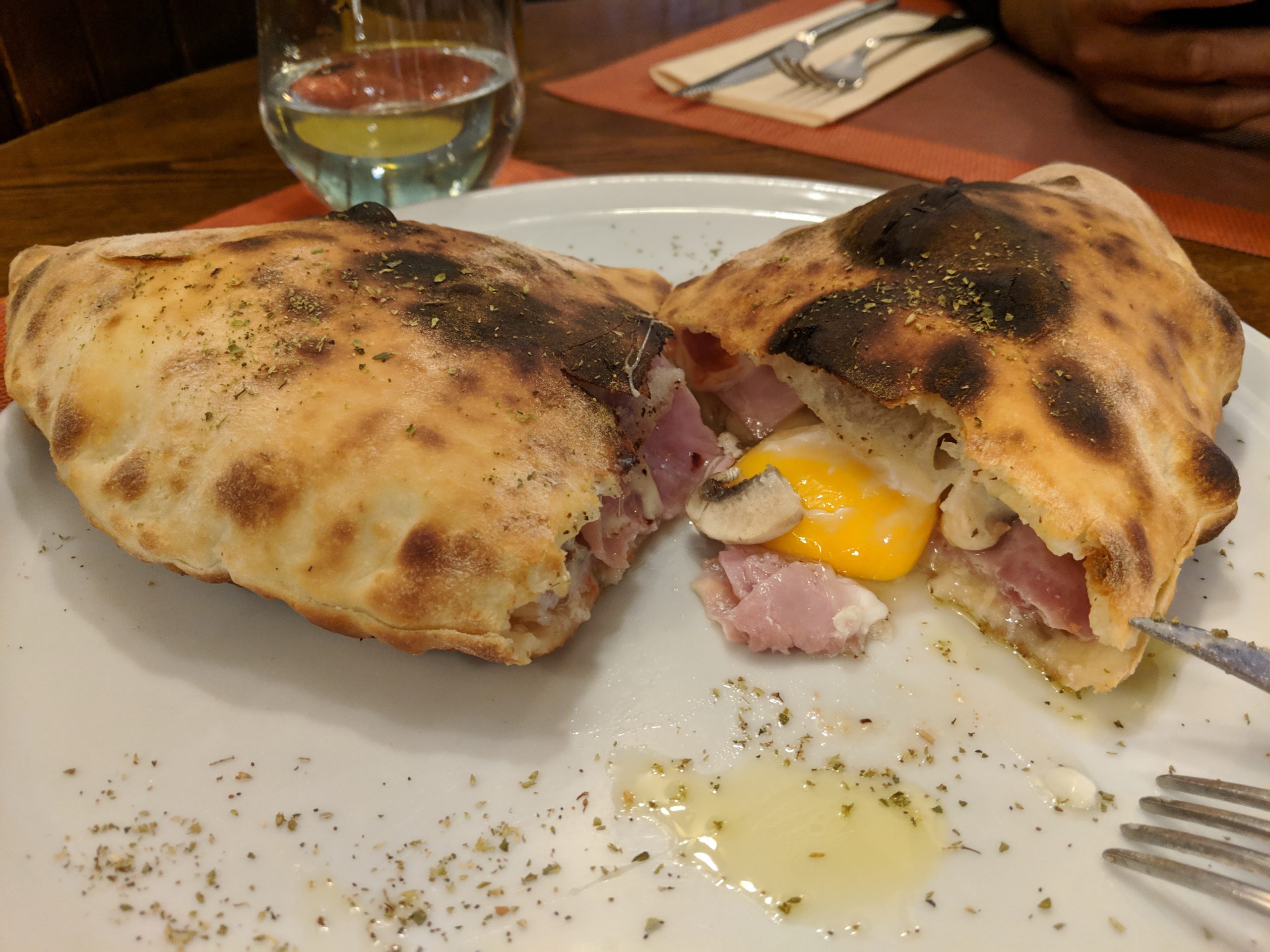 After the museum we wandered around Vieille Ville, Geneva’s old town, for a quick peek at St Pierre Cathedral and some lunch. The Cathedral has these beautiful stately columns in the front but inside feels quite cozy and intimate, which was magnified by the hushed conversations of a group of school children visiting the church. We sat a moment to admire the arches and stained glass until our bellies warned us that we’d spent enough time contemplating the historical and abstract. Luckily we didn’t have to wander far from the church before coming across Le Syracuse Navy, an Italian restaurant with a mild nautical theme. Carl ordered a burger, which came with the most well seasoned fries we’ve ever had, and surprisingly I ordered a calzone, which I demolished to the last bite, no regrets. While simple, this meal was on the pricier side, however the quality was excellent.