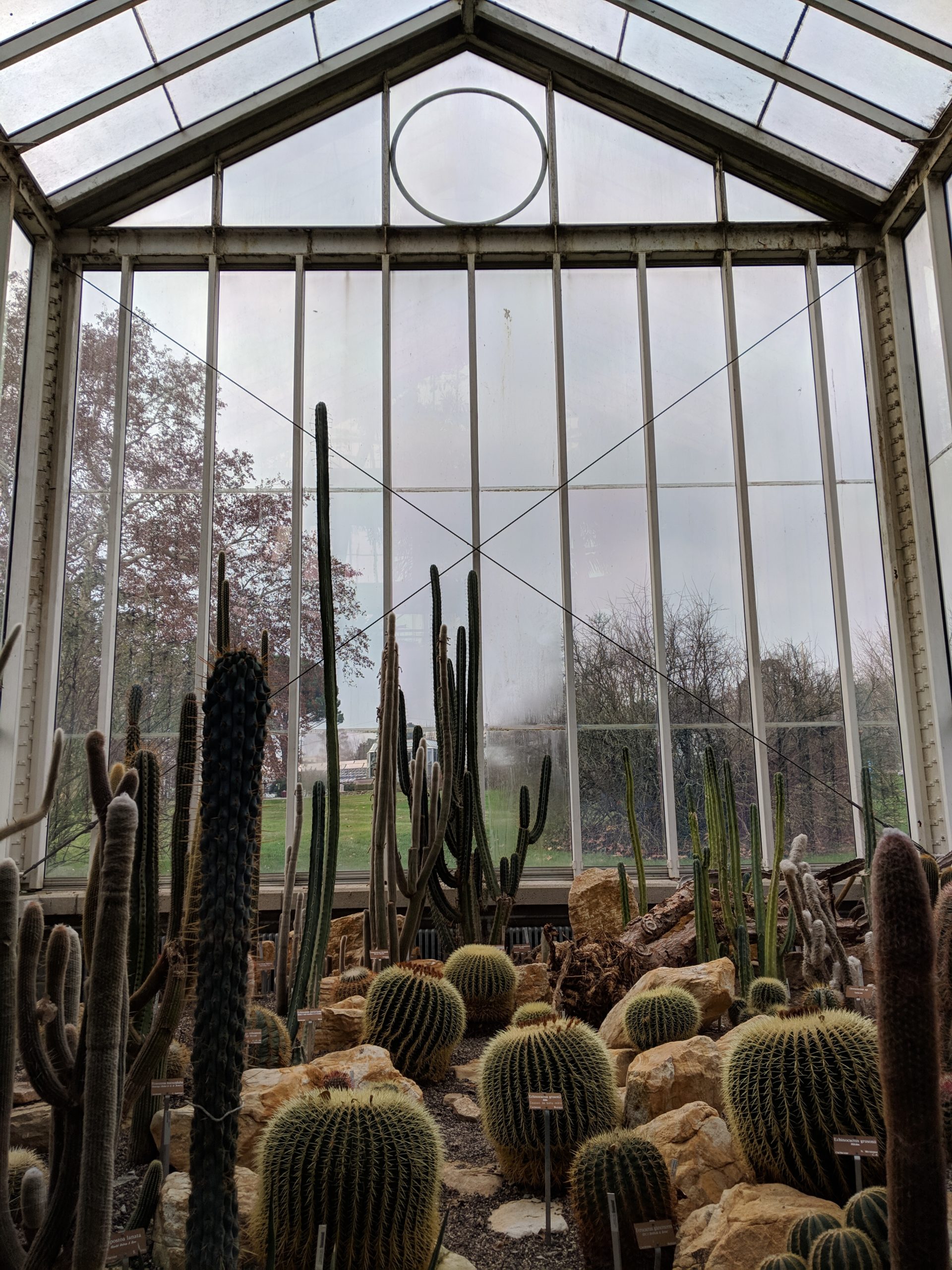 Other than eating comfort food (fondue) and hiding out in museums, we’ve found that botanical gardens are great places to visit in the wintertime. We took the tram out to Palace of Nations to see all the flags and the Broken Chair, a monument that started as a reminder of the treaty against the use of landmines and later expanded to represent the victims of all war violence. Next we headed to the Conservatory and Botanical Garden of the City of Geneva, which was at another park just next to the Palace of Nations.