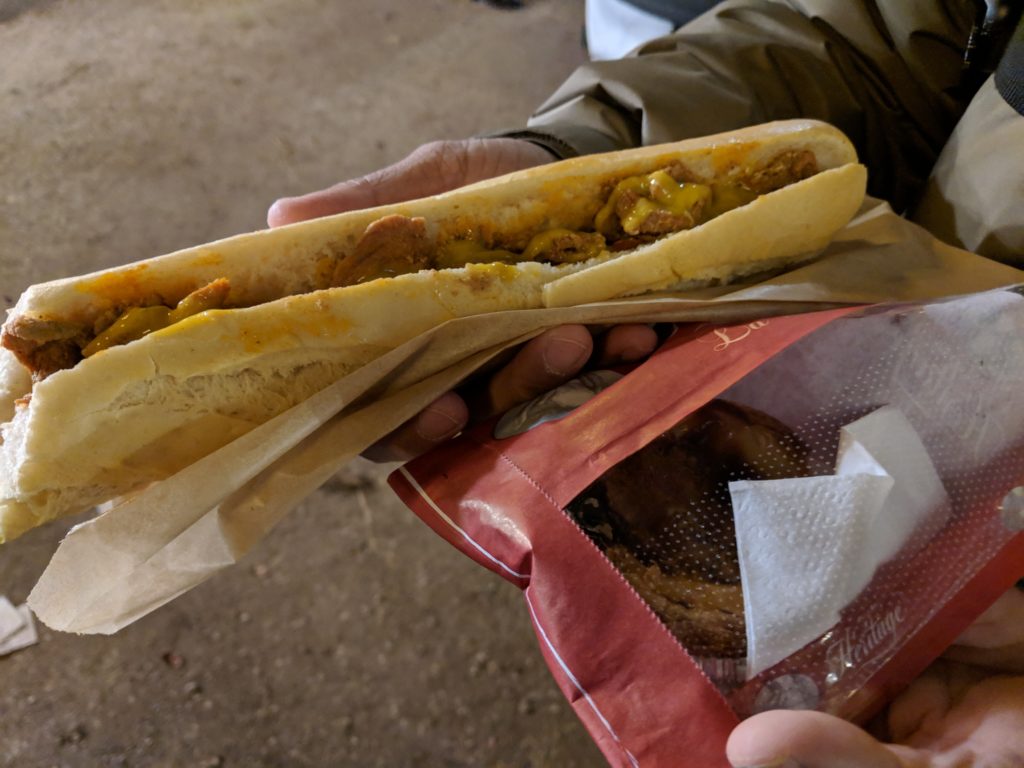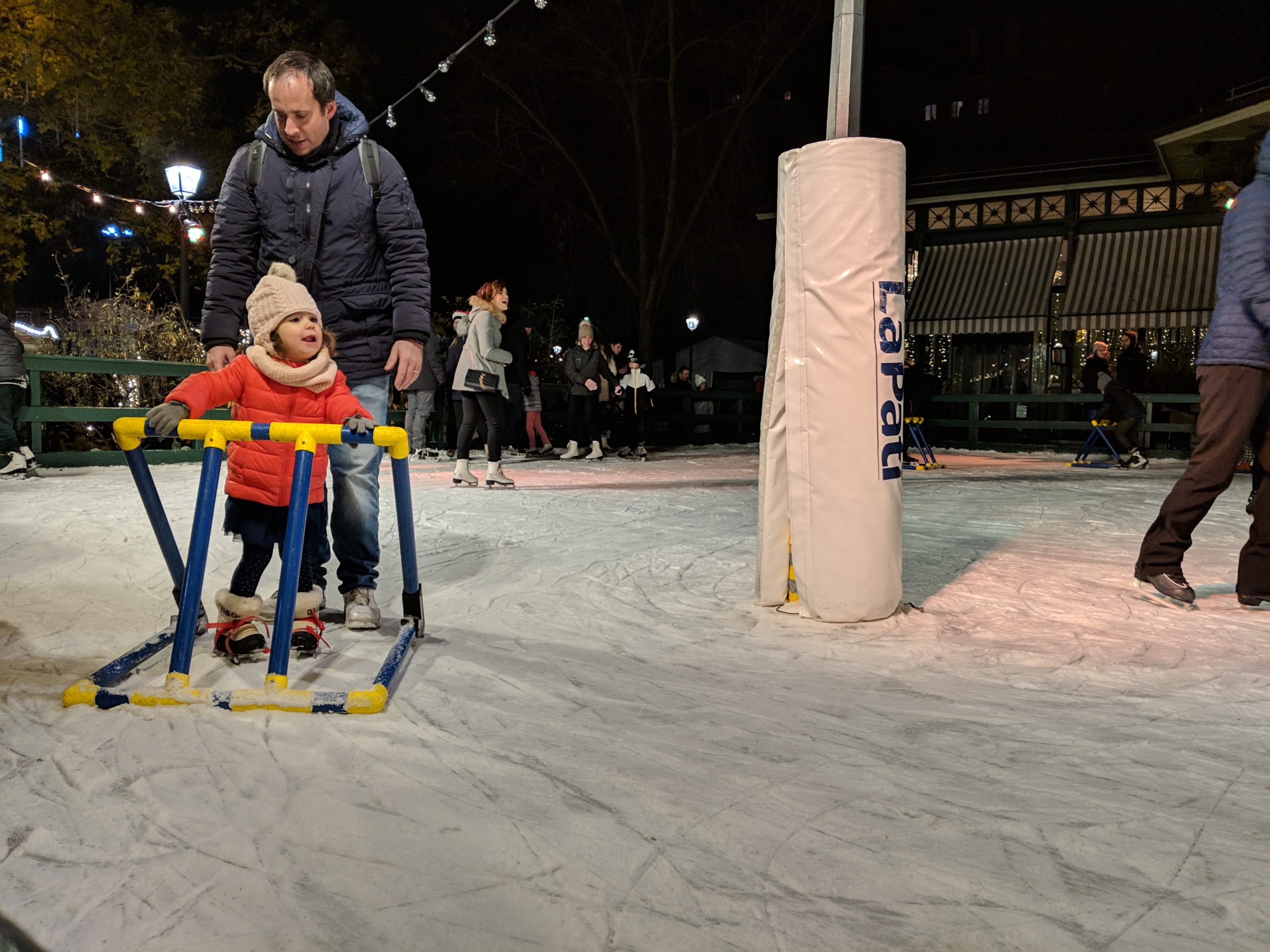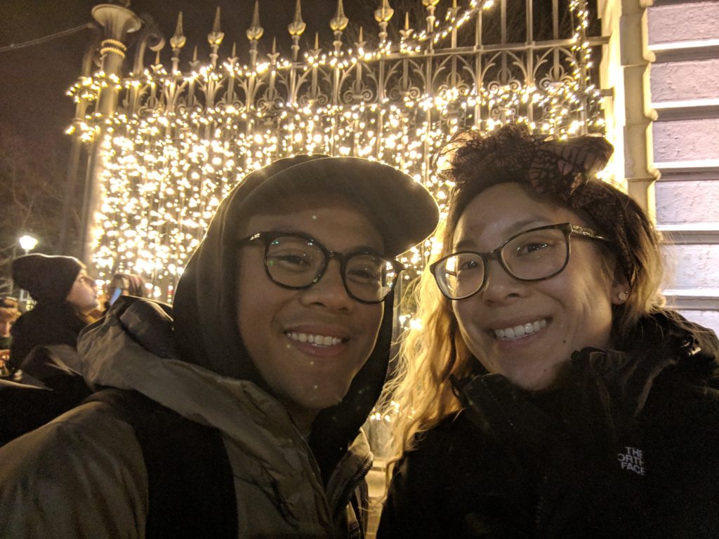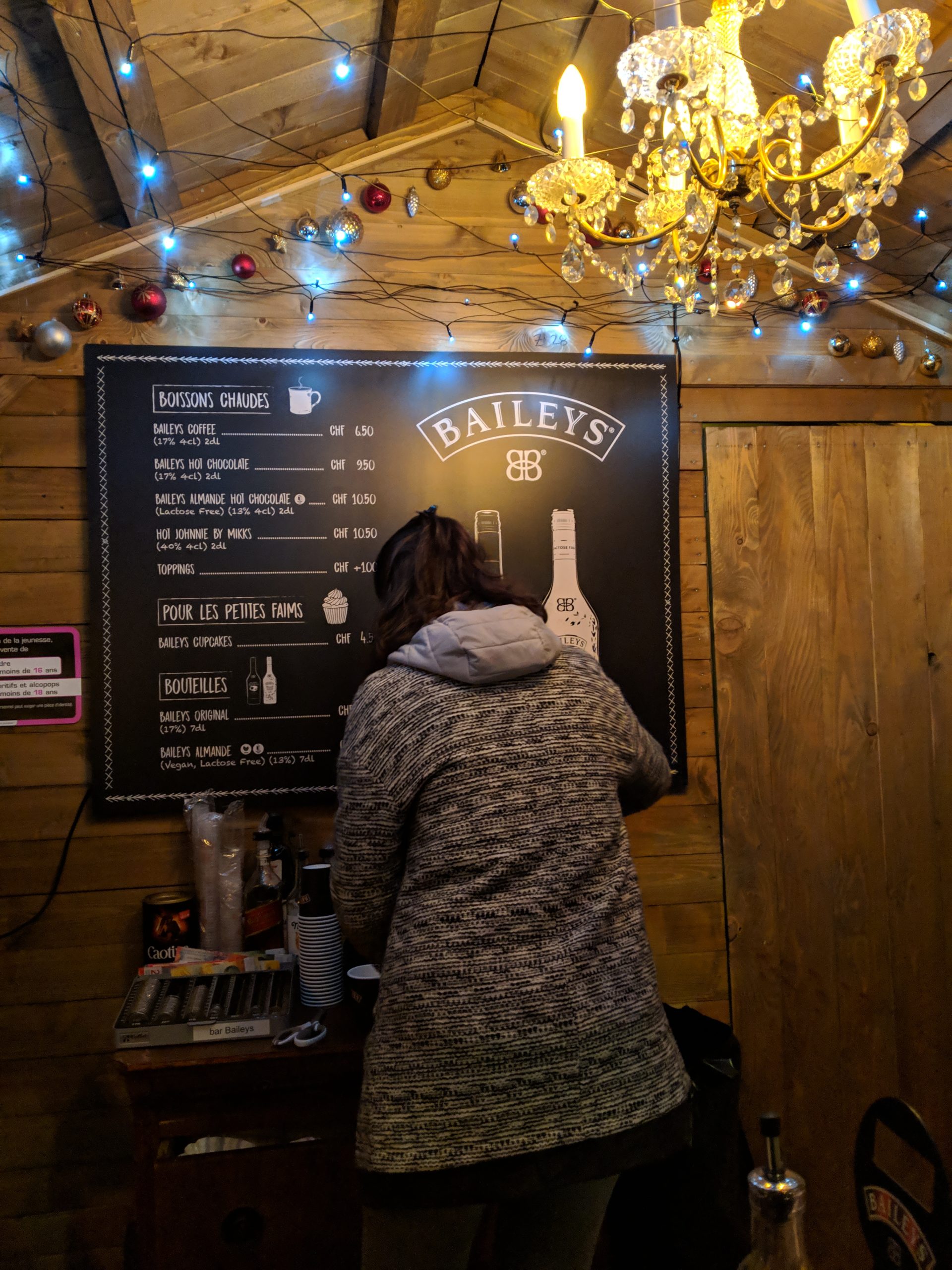 Curiously, the Geneva Christmas Market had a nice international variety of food stalls. We tried momos, a bifanas and a pastel de nata, which was good but served cold (which was disappointing after our trip to Lisbon, where they’re always served warm and the bifanas are only about 2 euros!). We sampled the bites while listening to a live band, lamenting the Swiss pricing, but lack of Swiss quality we were starting to expect, however it was still a great time trying out the stalls. The drinks however, were very strong, and probably more worth the Christmas Market price. We took our hot cocktails to the ice rink and watched the families and couples slipping around bravely across the ice while we tried to keep our hands warm around the paper cups. Amusingly, most of the Christmas music we heard played throughout our time in Europe was American, which makes sense I suppose given it’s one of our biggest exports. That night when we get back to the hotel, it starts to rain and even snow just for a few minutes.