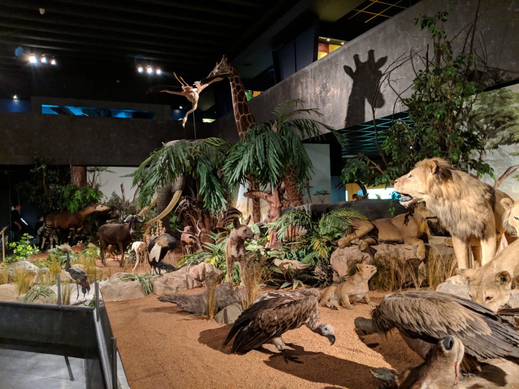 While I understand that it’s not always possible, I found it truly inspiring that Geneva’s museums were free to visit; each time we went we saw groups of school children or families with their kids and maybe I’m extrapolating but it felt like a society investing in its people and especially its youth by providing a means to some free education and free exposure. Idealogic comments aside, we also really enjoyed our visit to the Natural History Museum of Geneva. While it was a little creepy with all the taxidermy, it was also kind of neat to be able to see all those animals up close. We have heard about the long problem of rhino horn hunting but it shocked us when we saw a sign in the museum next to the rhino telling people the real horn has been replaced with a replica, and we realized that it really was an epidemic. There was also an impressive mineral rocks exhibit, with some of the largest pieces of semi-precious stones, a huge variety of minerals that took on surprising characteristics like appearing fibrous or having unique shapes. There were stones that were made up of multiple minerals or even ones that glowed in the dark! Carl also played his way through a very cute kid’s game exhibit about parasites, which earned him a souvenir photo at the end.