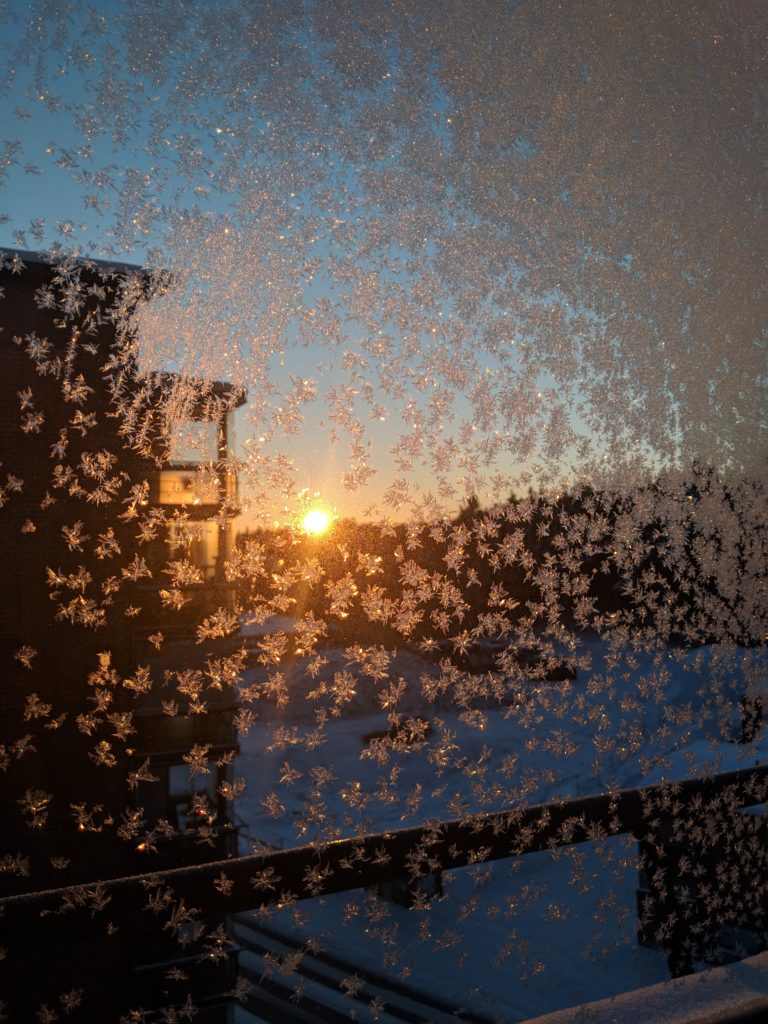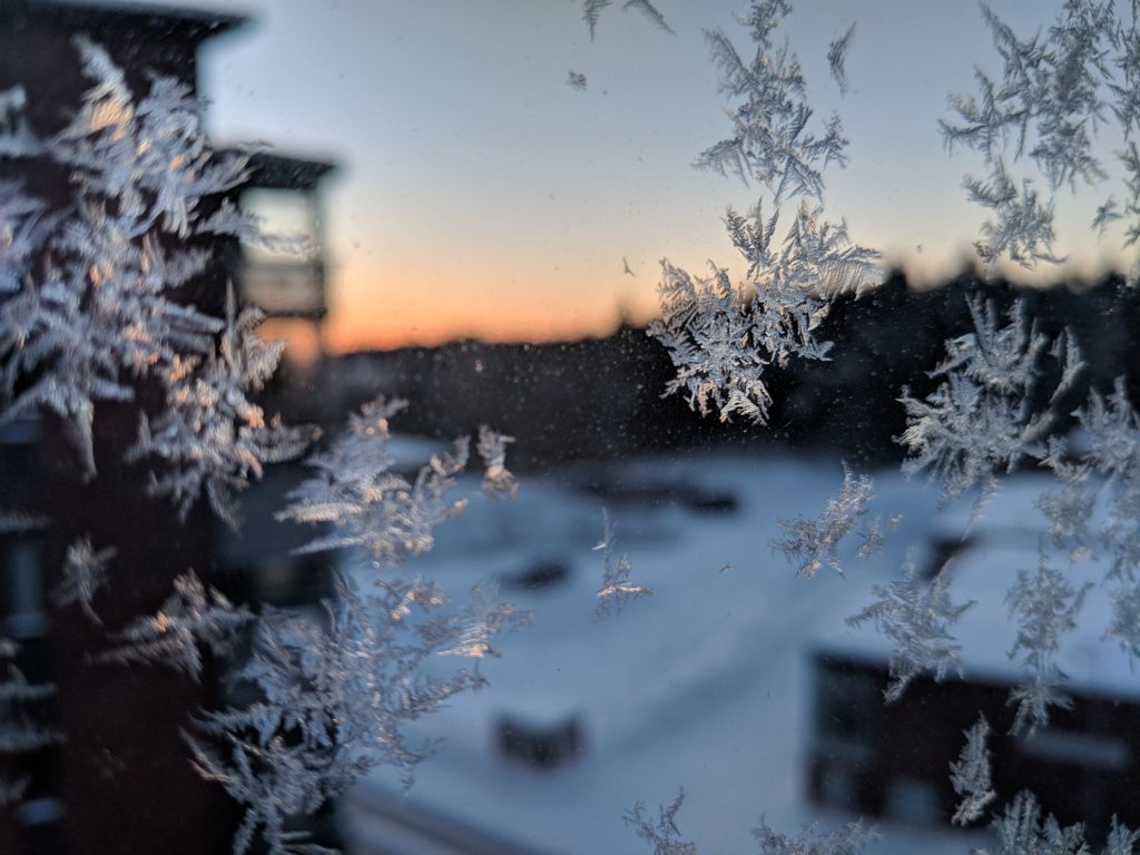 Walking through the streets with the snow piled up in corners. Snow on top of snow and you can’t be sure if it’s old snow or hard rock or something else entirely. That distinct squeaking crunch of fresh snow underfoot: the air compressing like a song. There is only inside and outside, reverting back to survival instincts of seeking shelter.