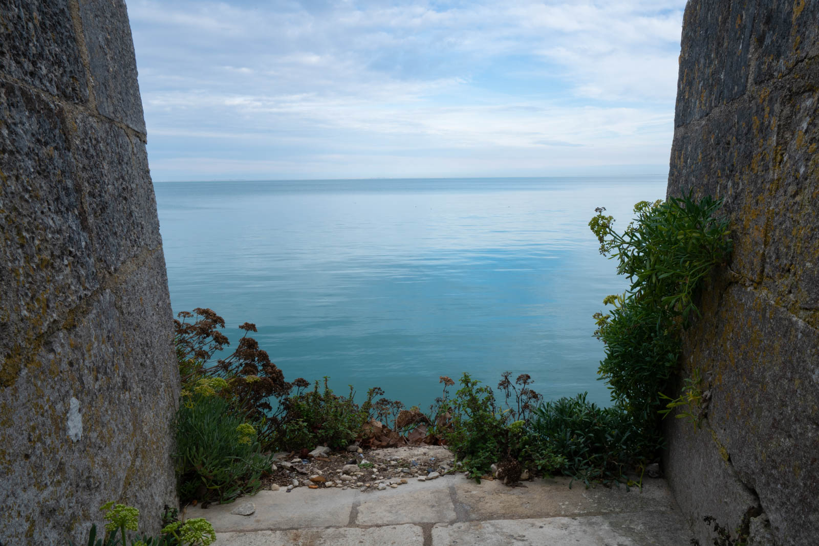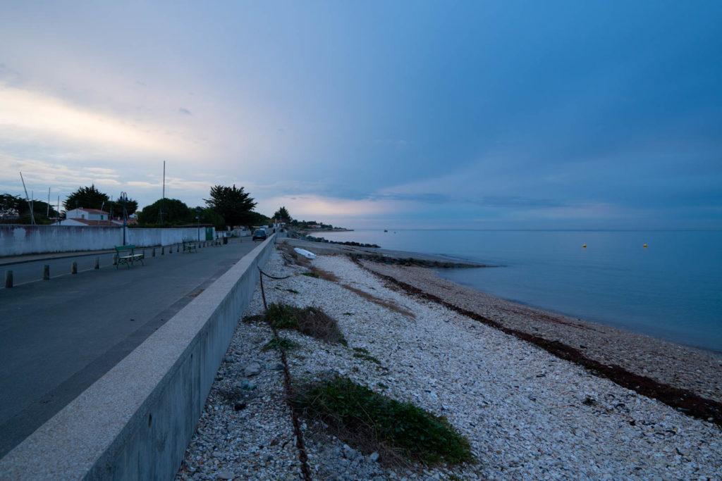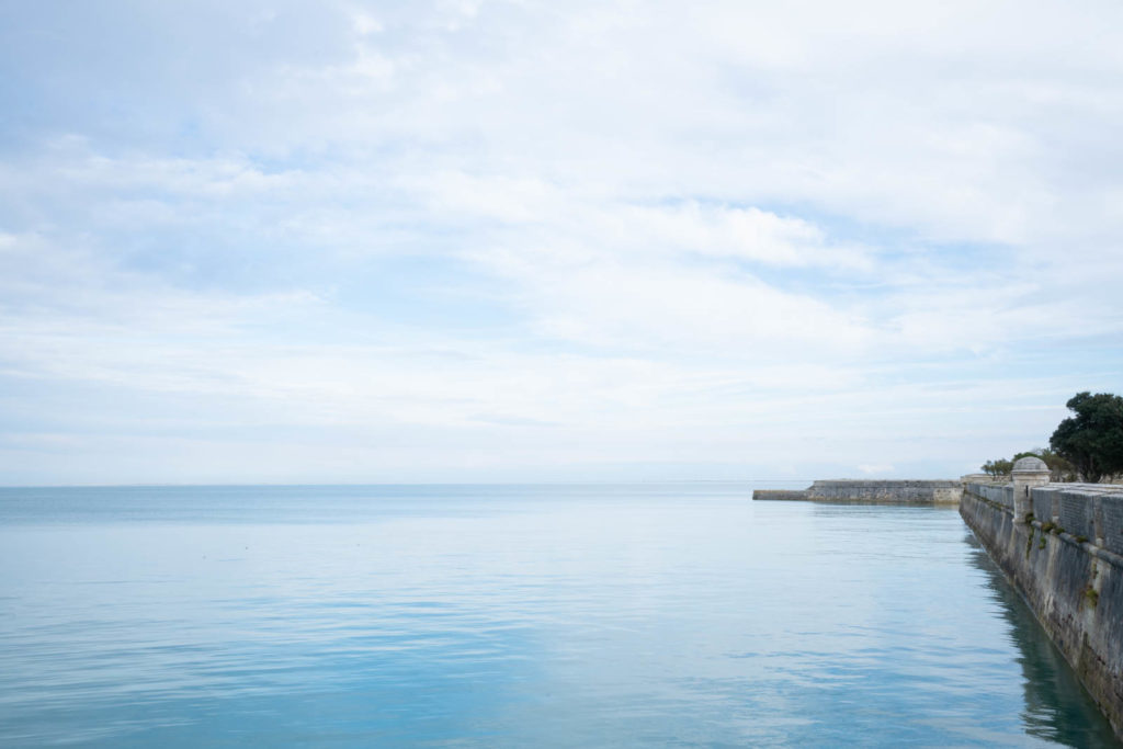 Many of the beaches were mostly rock, and in La Flotte there is a stretch of shore where the rocks are mixed with mussel shells. Locals strolled by with their dogs as we sat on the wall and stared until the sky merged with sea.