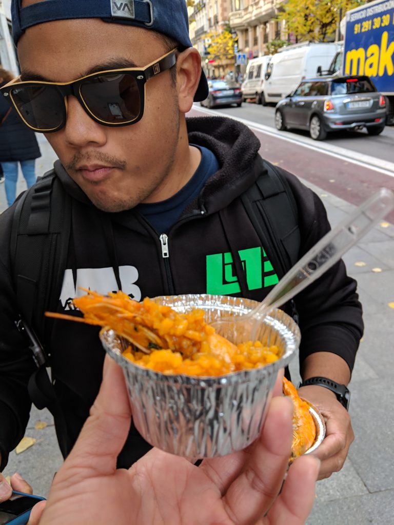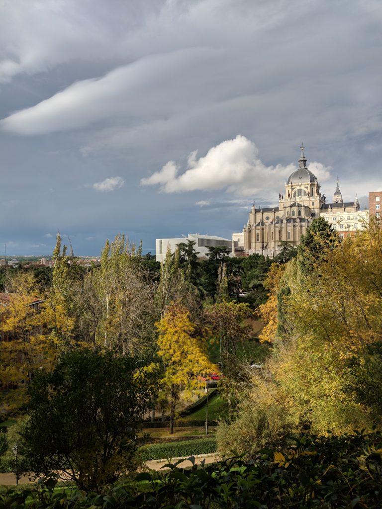 We walked everywhere we went in Madrid; our AirBnB was located just 15-30 minutes walking from most of the major attractions, like El Retiro Park or the Palacio Real de Madrid. We spent our first day exploring the West side of Madrid. We walked around the Plaza de la Armería to the grandiose sound of Bocelli’s Time to Say Goodbye on an accordion and made our way through Jardines de Sabatini, where we had to hide under a tree to wait out some rain, to the Templo de Debod, which was inexplicably closed. Disheartened, we decided to do something that always makes us happy: eat.