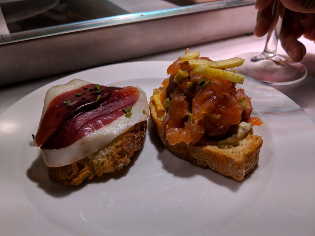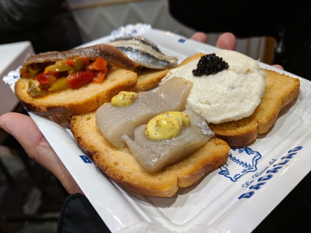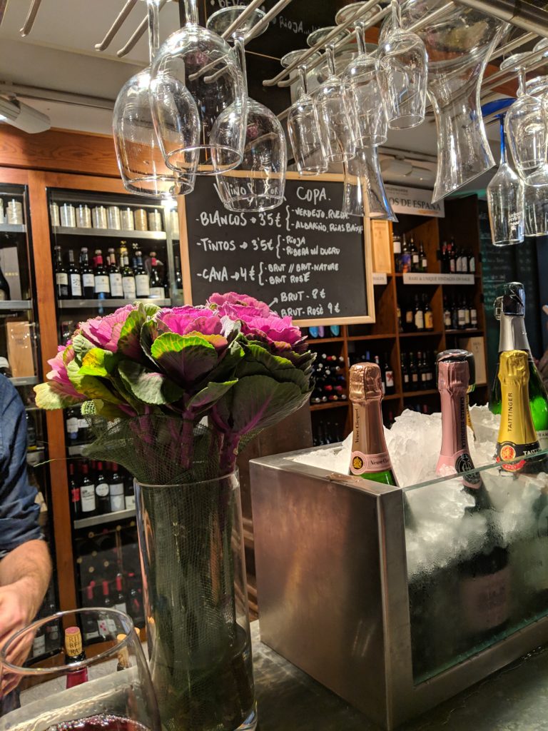 For lunch we explored Mercado San Miguel, the very popular food market of Madrid. The food seemed priced for tourists, however, the drinks were reasonable and we found a delicious white wine, 2017 Ermita Veracruz Blanco – Rueda, crisp and just a touch sweet! We did manage to find one tapas bar which had 1-2 EUR tapas, so we snagged a few and squeezed into a corner to people watch. Soon it felt too crowded so we slipped outside and directly in front of the Mercado is Bar Cerveriz, an unassuming little bar that we almost missed while looking at the Mercado. Bar Cerveriz has the very best tortilla: the egg is so soft and just a tad runny. So perfect!