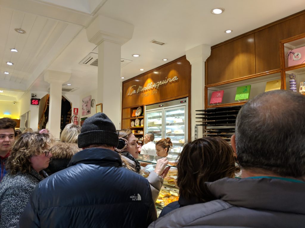 For another dessert that’s acceptable as breakfast, try a napolitana de crèma (or) chocolate from La Mallorquina. They’re essentially Spanish croissants and I’d even go so far as to say I like the napolitana de chocolate more than a traditional French pain au chocolate – they have a much better chocolate to bread ratio. As we joined the queue, I almost felt like I was in Chinatown: people just crowded in and those grandmas had no qualms about cutting in front of you! Stand your ground though, the napolitanas are worth it; we went back the very next day for more.