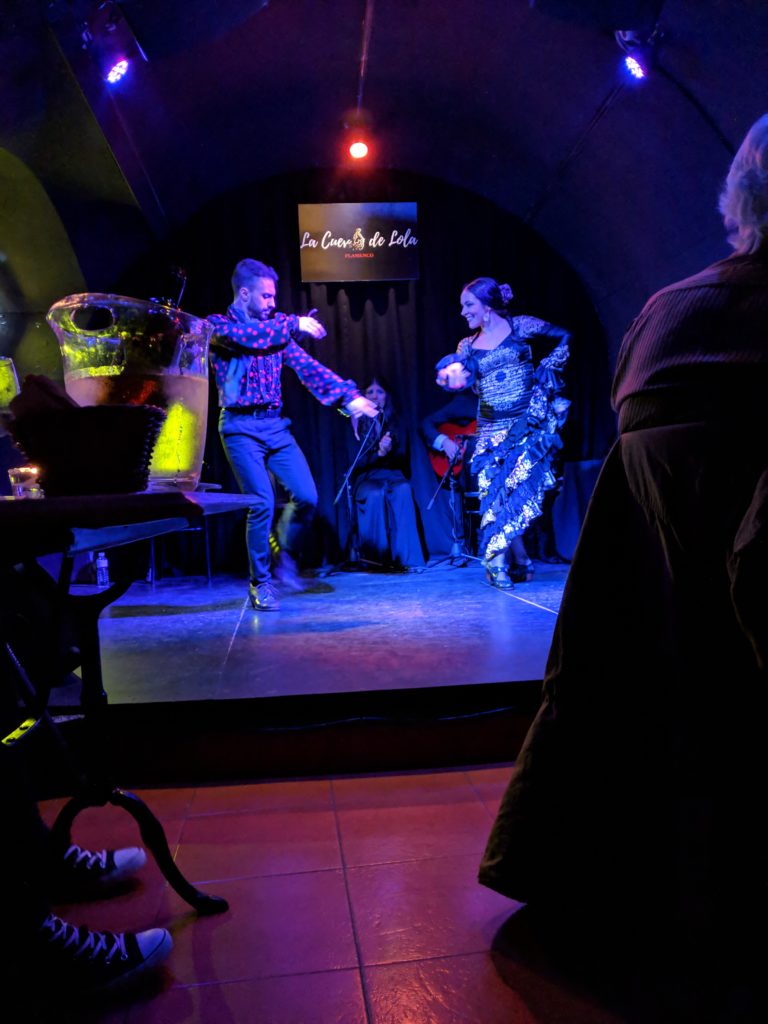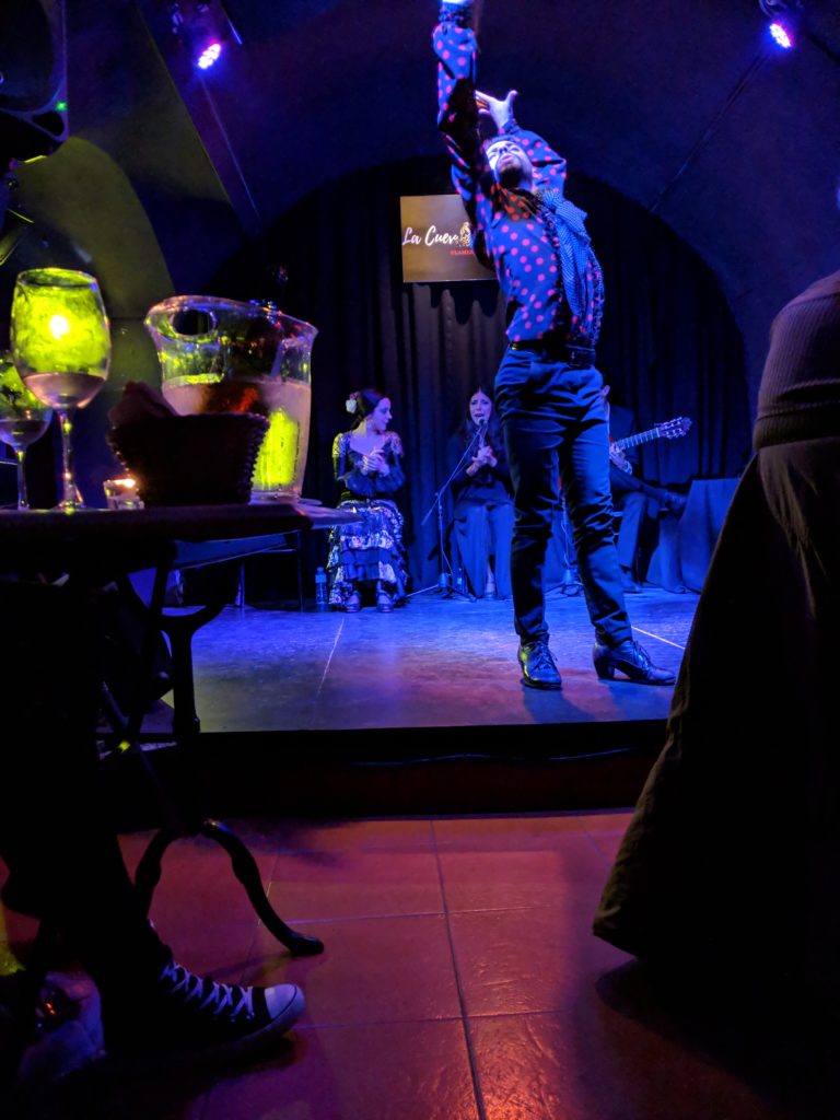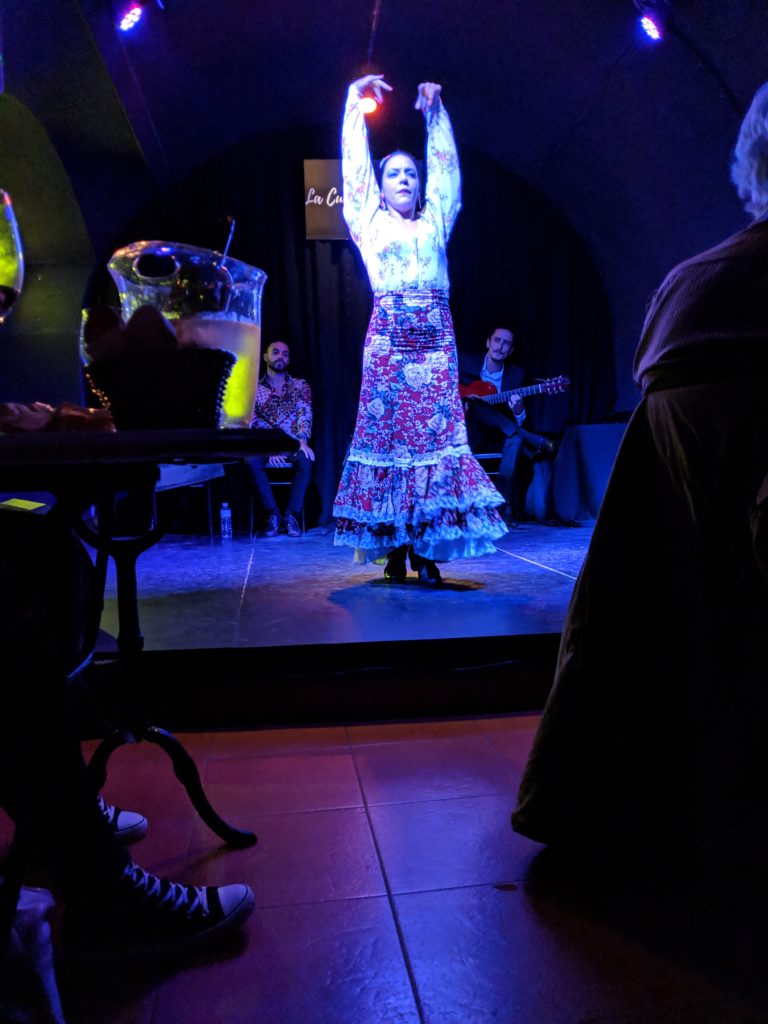 That evening we went to watch an intimate flamenco show at La Cueva de Lola. It was yet another first experience for us and it was much more intense than we had expected. The graceful fingers of the guitarist flying over the strings, the deep throaty powerhouse of a singer, and the almost feverish snapping and stomping of the dancers had us simultaneously drawn in and reeling back from the passion.