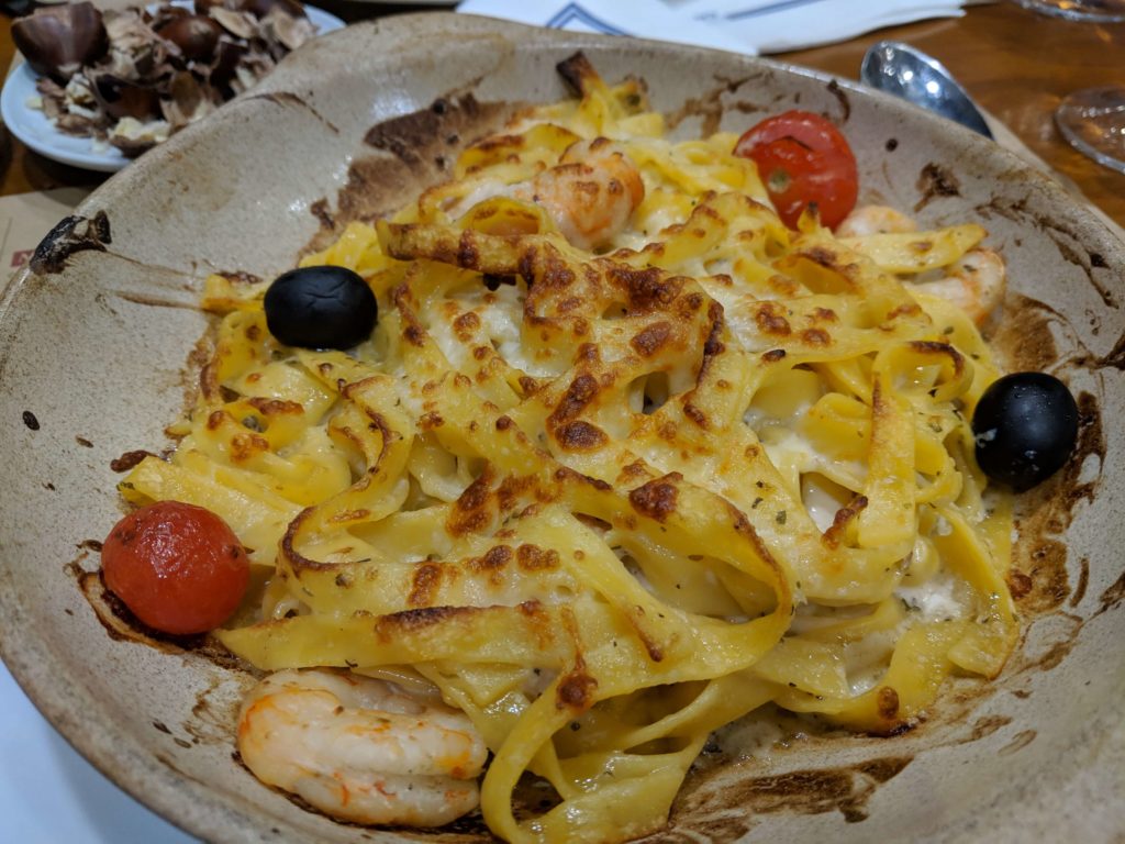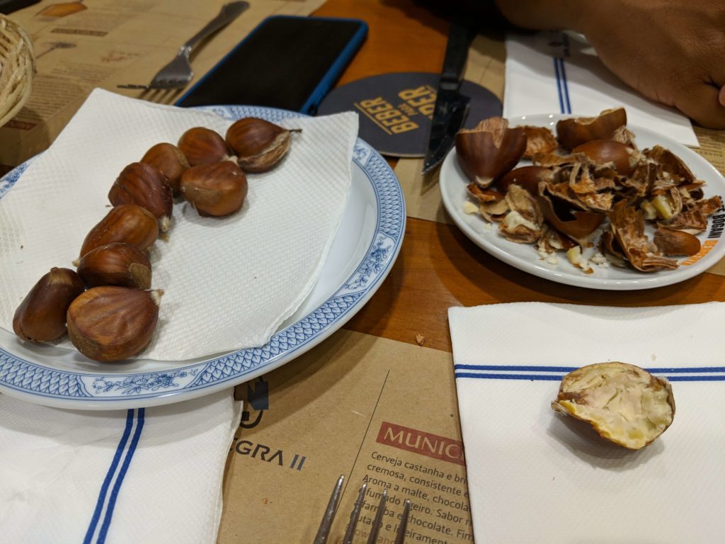 We came to Capa Negra II for a late lunch to try a Porto signature francesinha; a very filling and popular sandwich stuffed with various meats, covered with cheese and a tomato and beer sauce. I had a disappointing tagliatelle pasta that was just too bland, but there was complementary roasted chestnuts. Note that ordering water gets you bottled water for 1 EUR.